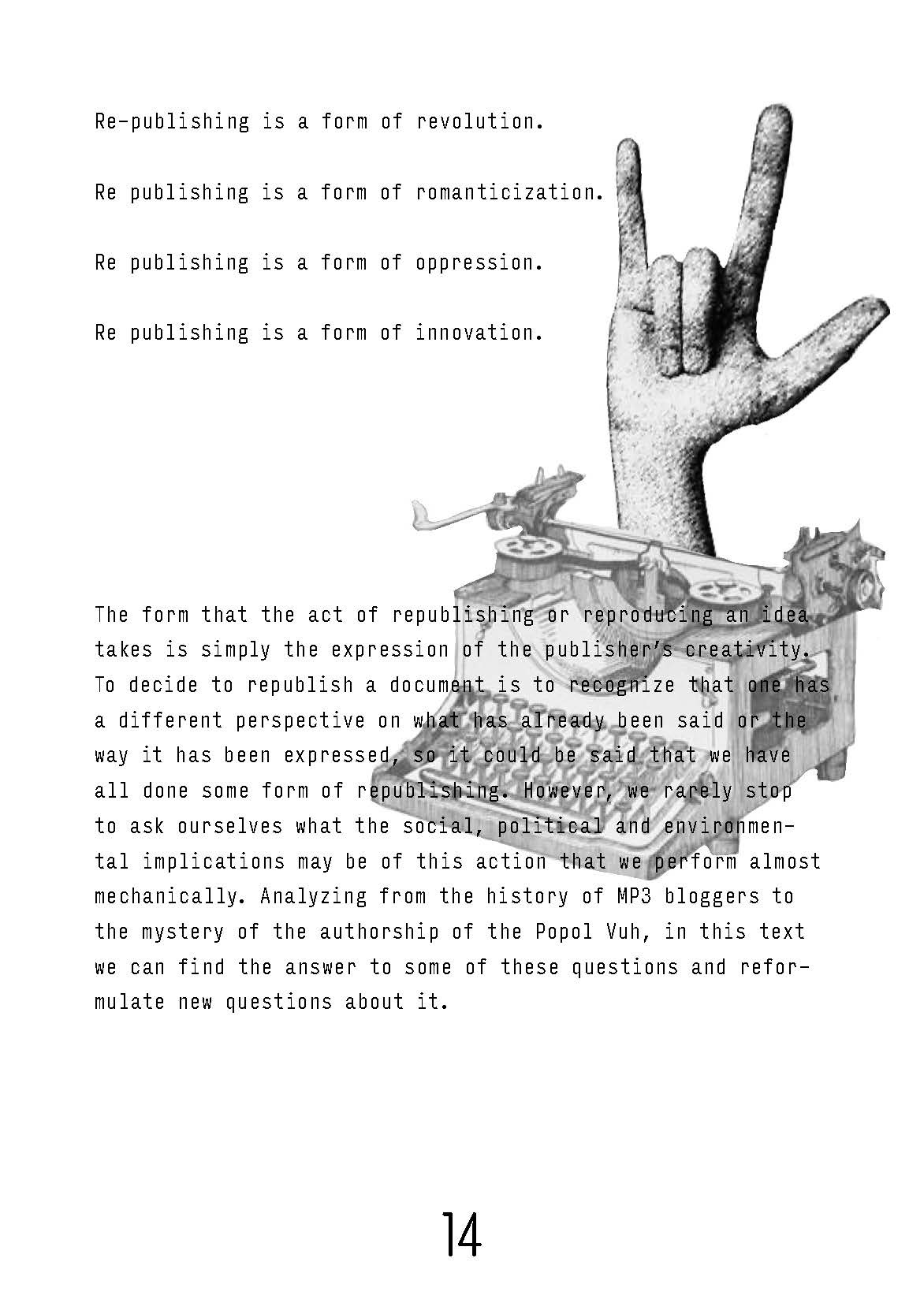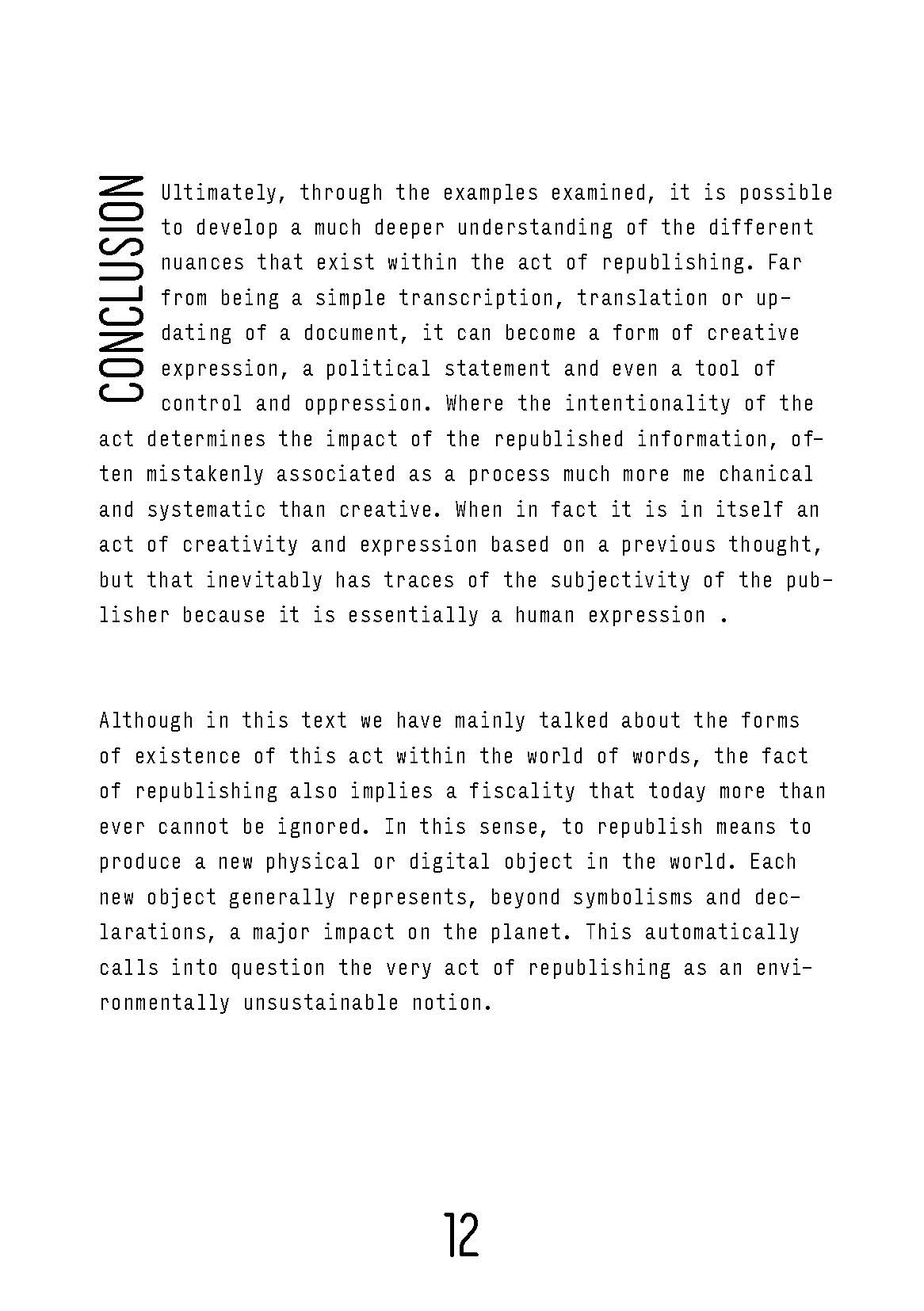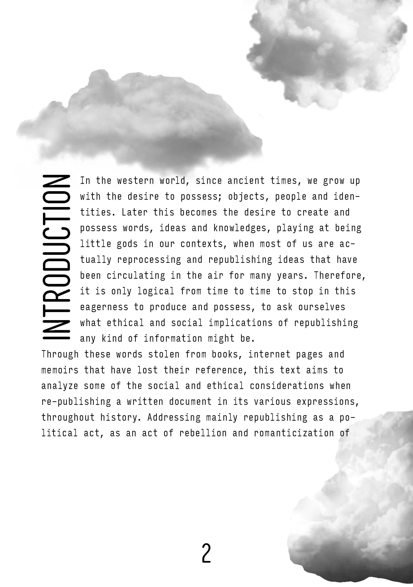 Editorial design of a booklet. This project seeks to re imagine the experience of reading a monotonous and serious essay about copyright into a fun and intriguing time.